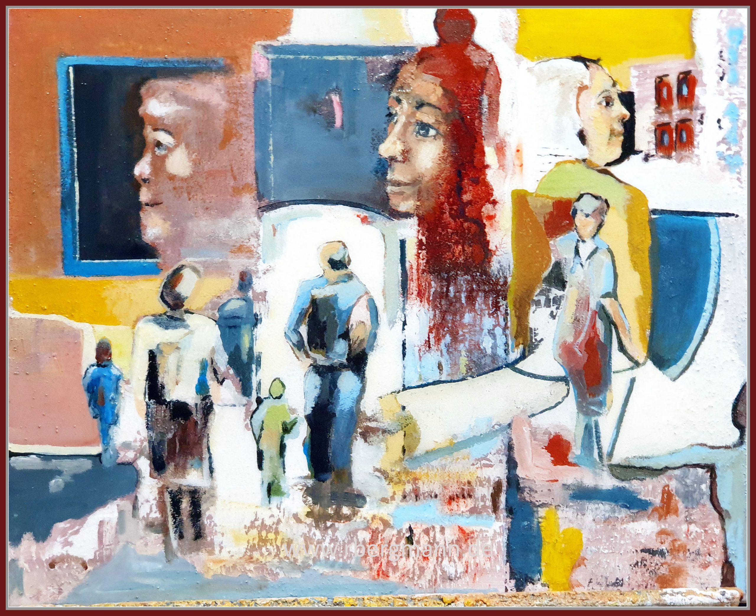 Wie kann man „Zeit“ darstellen? Die Idee zu diesem und weiteren Bildern, in denen ich unterschiedlichen Wahrnehmungen und Erinnerungen in einer Art Collage miteinander verwebe, ist während eines Besuchs einer Ausstellung von Tim Eitel in der Kunsthalle Rostock entstanden. Tatsächlich lege ich immer häufiger verschiedene Bilder übereinanander, übermale auch schon mal ältere und schaffe neue Erfahrungsräume.