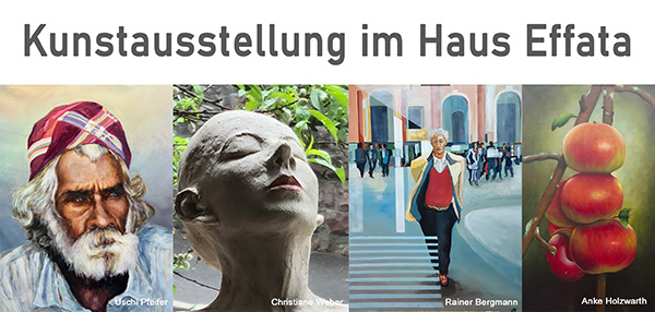 Schon zum vierten Mal findet das Format „Kunstausstellung im Haus Effata“, Schulstrasse 15 in 63773 Goldbach statt. Unter dem Motto „Vier Facetten der Kunst“ lade ich regionale Kolleginnen und Kollegen zu einer gemeinsamen Präsentation unserer Arbeiten ein: Figurative Malerei, Skulpturen und Grafiken.